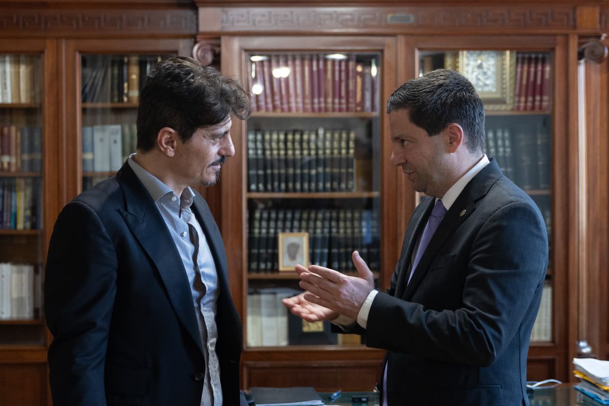 Ο Πρόεδρος του Ιδρύματος «Παύλος Γιαννακόπουλος», κ. Δημήτρης Γιαννακόπουλος (αριστερά) και ο Πρύτανης του Εθνικού και Καποδιστριακού Πανεπιστημίου Αθηνών, Καθηγητής κ. Γεράσιμος Σιάσος (δεξιά).